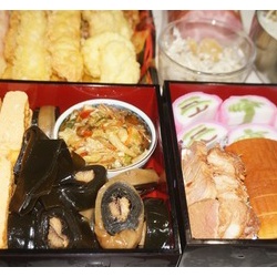 我が家の質素で簡単な「おせち」を大公開です。 ネットでよく見る華やいだおせちとは違い、 一切の飾りを省いたシンプルかつ貧乏なおせちね。 出汁巻き、昆布巻き、松前漬け、伊達巻、チャーシュー、 蒲鉾、数の子わさび漬け、なます、ハム、天ぷら盛り合わせ、 伊達巻は1本 ...